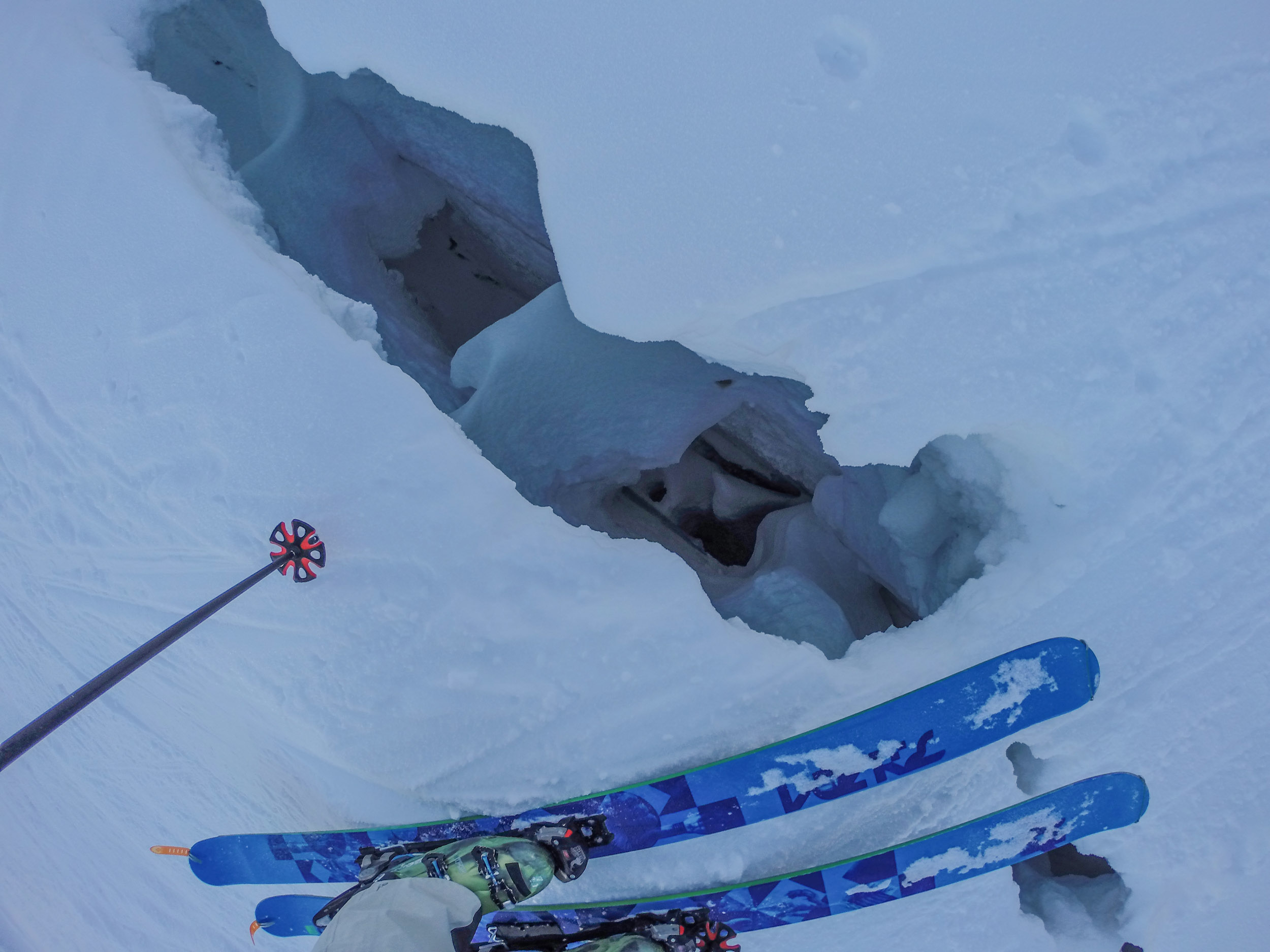 It had snowed on on the first day and a good 10-15 cm had covered the icy west flank. We had eyed it on our way up. It was truly a nice steep run. Fresh just for us. Ready and waiting for us. Without further words check out Flos GoPro footage of the line in his season edit.