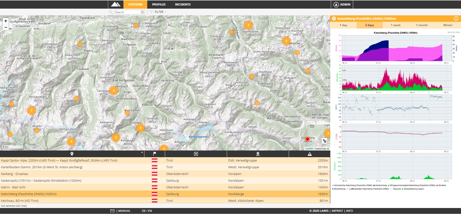Fortunately for us there is a very wide network of weather monitoring stations all across the alpine countries. You can find these on the local avalanche webpages from the EAWS web portal. Now you start following the wind, temperatures and the snowfall at the weather stations at or closest to your destination. It helps if you chose a few at different altitude in close proximity. Different countries have different guidelines for this kind of data. Again here I consider the Austrian LAWIS system the gold standard.