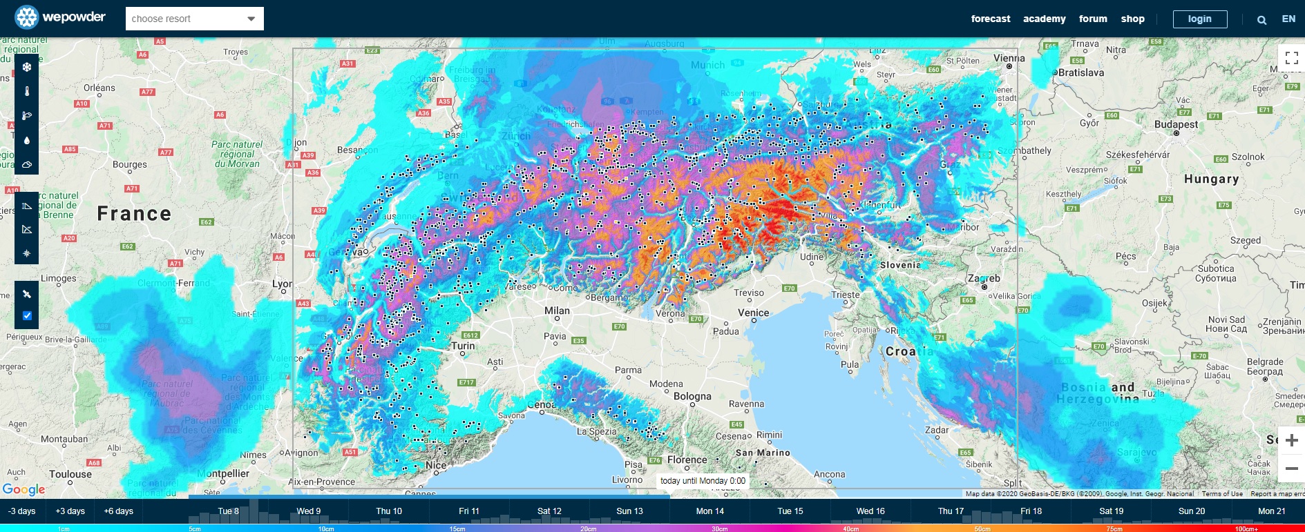 In practice that means that one has to become their own “weather guy” ;). The process I use is simple, sometimes stressful, a bit time consuming and teaches you to make decisions. Sometimes its so close to call that it frustrates too. When you spot a window of opportunity on the preliminary weather forecasts you can narrow down the days of the week that are going to be powder days. Pages like wepowder, yr.no even bergfex and specifically LAWIS data stations are of the utmost importance.